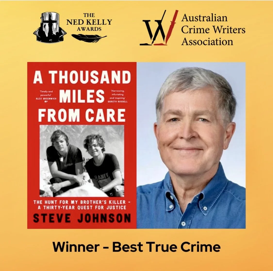 The winner of the 2025 Ned Kelly Award for Best True Crime is: A Thousand Miles from Care by Steve Johnson (Harper Collins).